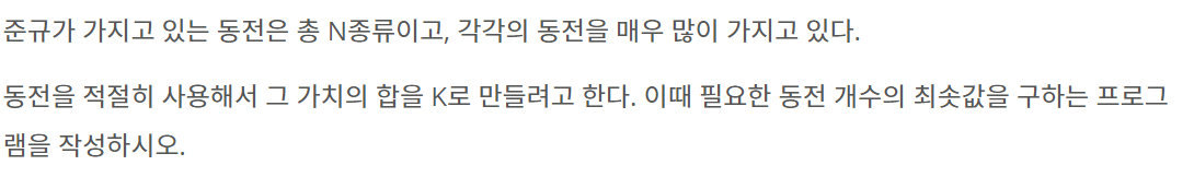 첫째 줄에 N과 K가 주어진다. (1 ≤ N ≤ 10, 1 ≤ K ≤ 100,000,000) 둘째 줄부터 N개의 줄에 동전의 가치 Ai가 오름차순으로 주어진다. (1 ≤ Ai ≤ 1,000,000, A1 = 1, i ≥ 2인 경우에 Ai는 Ai-1의 배수)