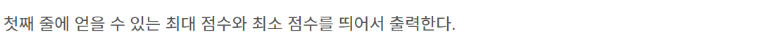 첫 번째 줄은 1 2 3, 값이 하나이므로 최댓값과 최솟값은 동일!