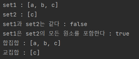 System.out.println("set1은 set2의 모든 원소를 포함한다 : " + set1.containsAll(set2));