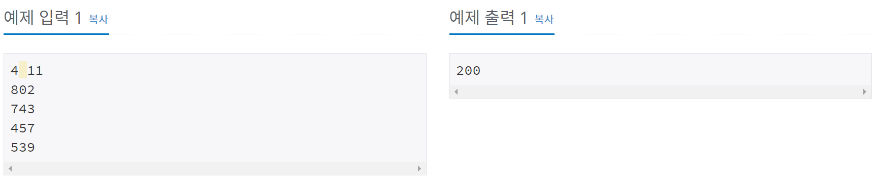 ⊙ 예제 입출력