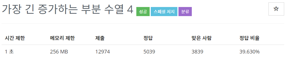 14002번: 가장 긴 증가하는 부분 수열 4