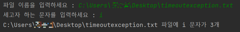 System.out.print("세고자 하는 문자를 입력하세요 : ");