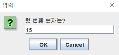 resultStr1 = JOptionPane.showInputDialog(null,"첫 번째 숫자는?");
