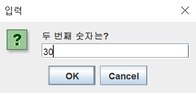 resultStr2 = JOptionPane.showInputDialog(null,"두 번째 숫자는?");