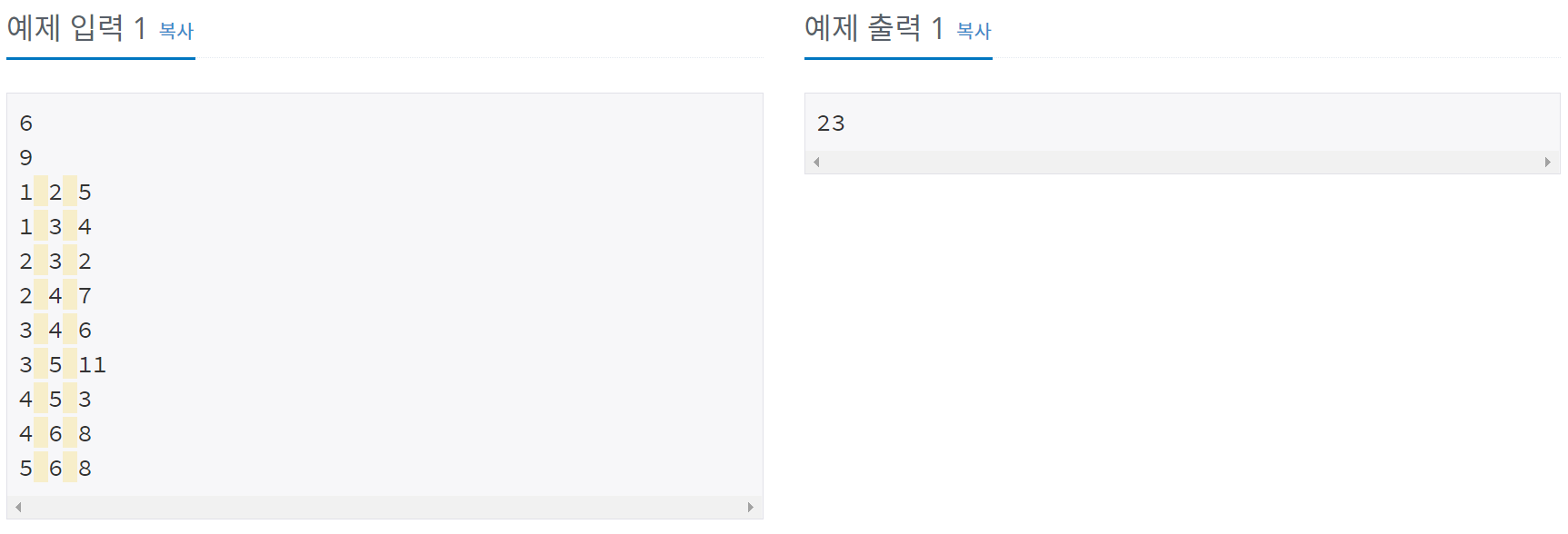 백준 1197번 문제(https://tooo1.tistory.com/199)와 코드 똑같아요. ㅋ