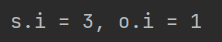 System.out.printf("s.i = %d, o.i = %d",s.i,o.i);