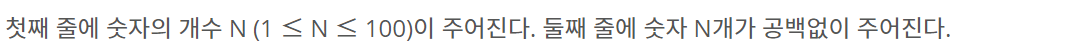 첫째 줄에 숫자의 개수 N (1 ≤ N ≤ 100)이 주어진다. 둘째 줄에 숫자 N개가 공백없이 주어진다.