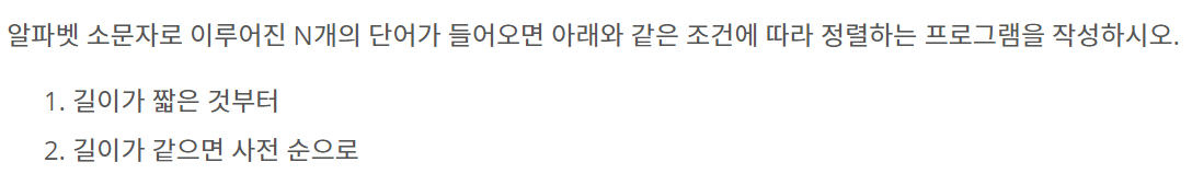 배열이 특정한 규칙( 1. 길이가 짧은 것부터, 2. 길이가 같으면 사전 순으로)을 통해 정렬하라는 걸 보고