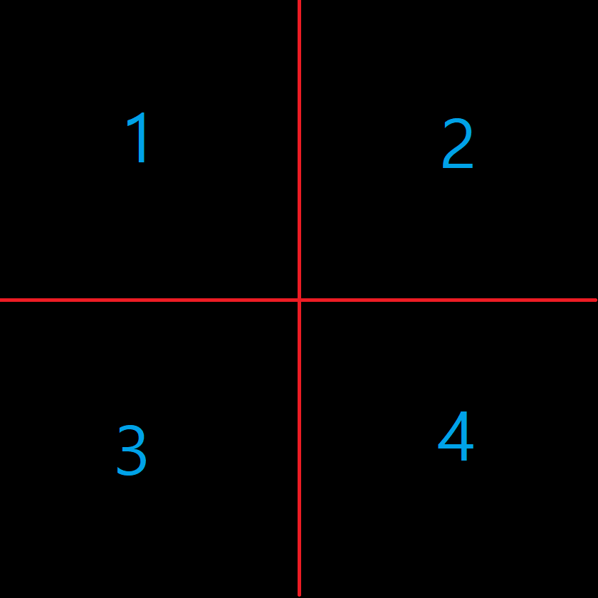 왼쪽 위, 오른쪽 위, 왼쪽 아래, 오른쪽 아래 순서(Z 모양)대로 방문하여 각각 1, 2, 3, 4라고 번호를 붙여줬다.