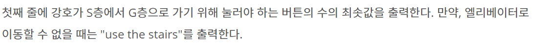 그러다가 목적층인 G와 현재층 S 값이 같다면 종료하고 값을 출력한다.