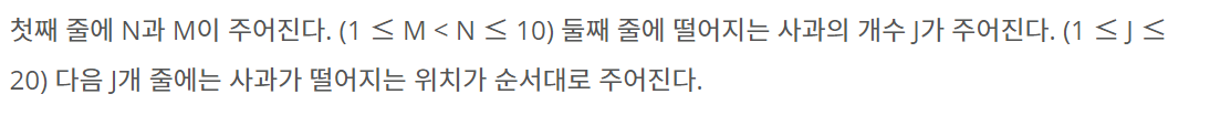 2828번: 사과 담기 게임