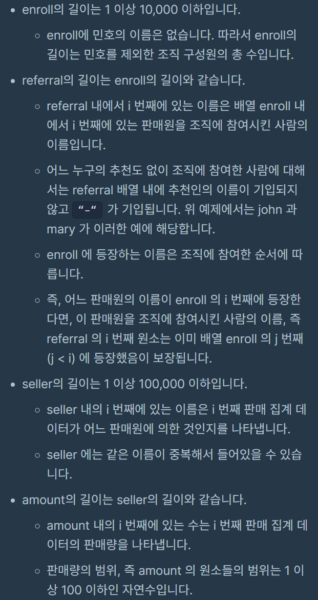 코딩테스트 연습 - 다단계 칫솔 판매