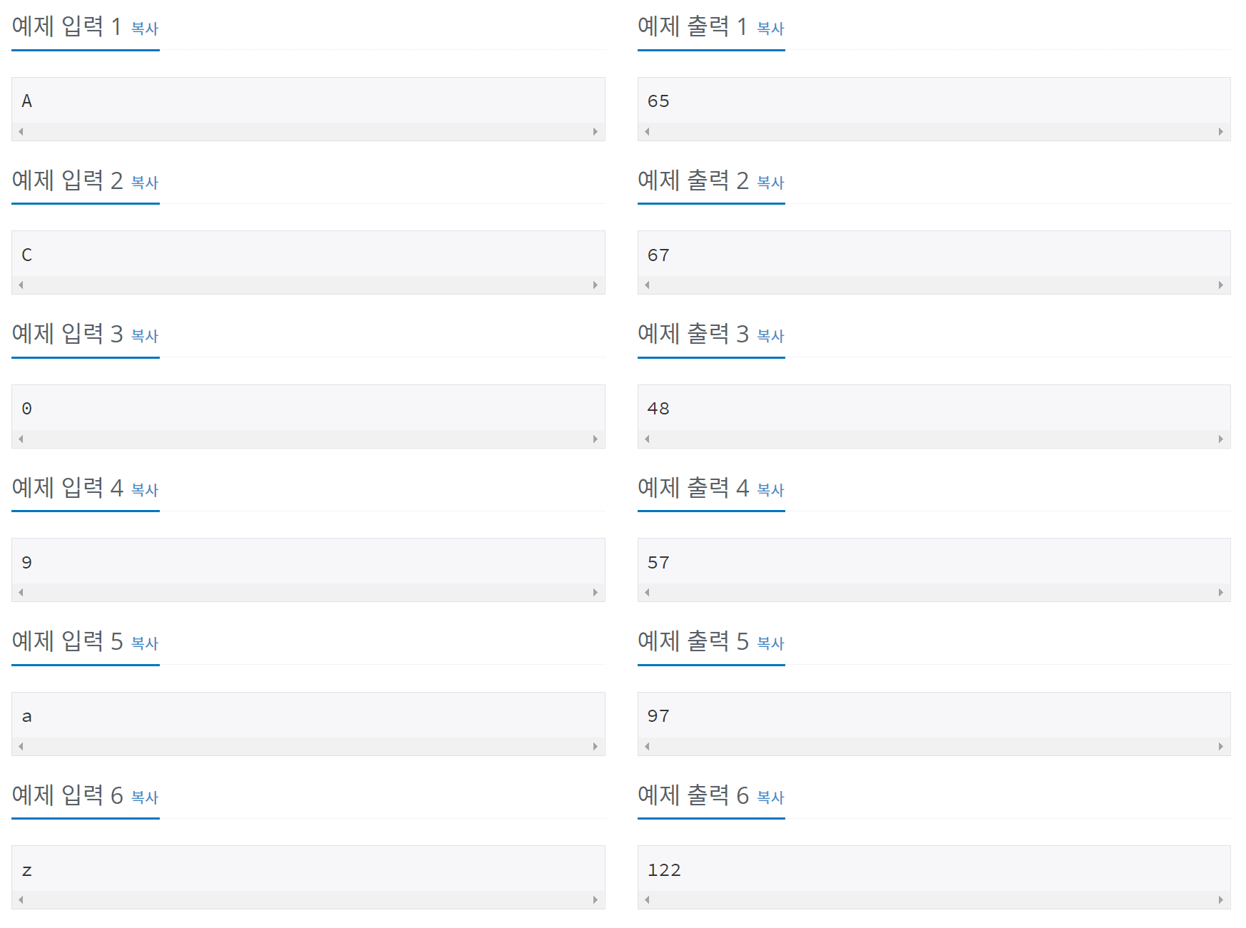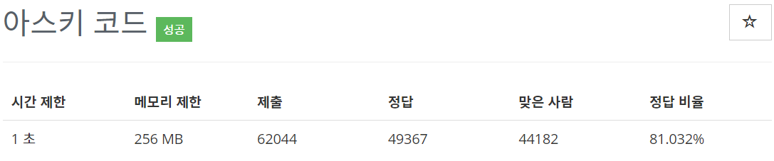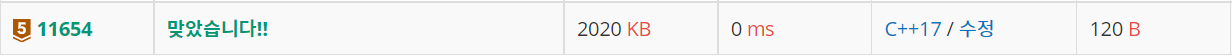 11654번: 아스키 코드