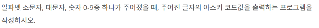 알파벳 소문자, 대문자, 숫자 0-9중 하나가 주어졌을 때, 주어진 글자의 아스키 코드값을 출력하는 프로그램을 작성하시오.