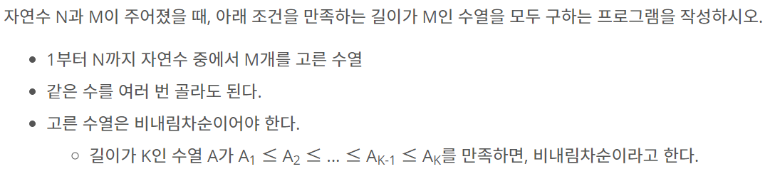 15652번: N과 M (4)