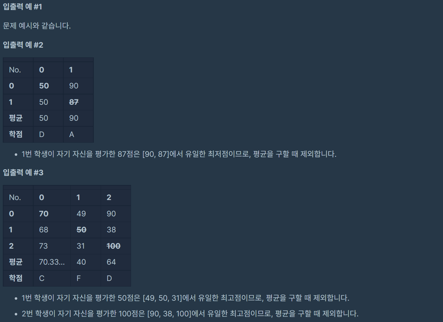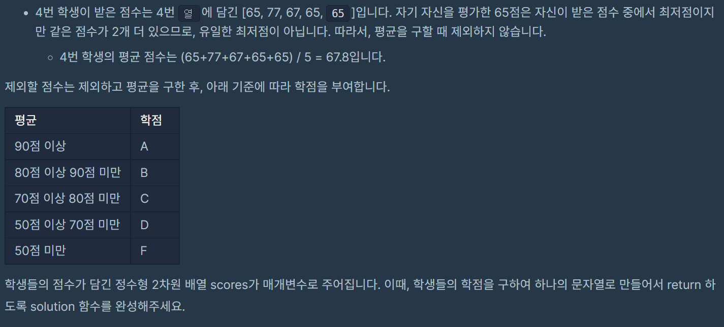 그리고 push되어 저장된 값들에 대해 평균을 계산하고 학점을 answer에 넣어주었다.