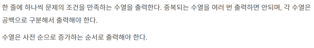 18번째 줄만 계속 수정해주면 N과 M 시리즈가 풀린다! 다음 문제가 그렇다.