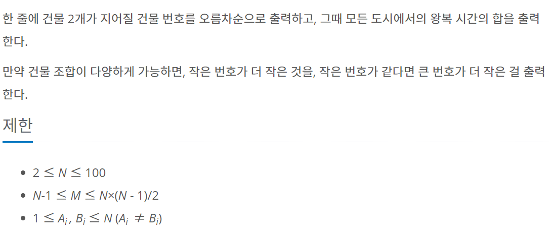 //(건물번호, 건물번호, 총 거리) 배열에 저장
