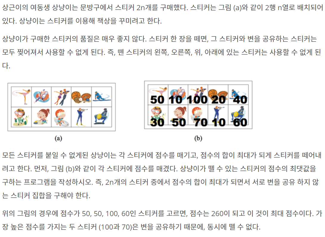 dp[1][1] = sticker[1][1]+dp[0][0];