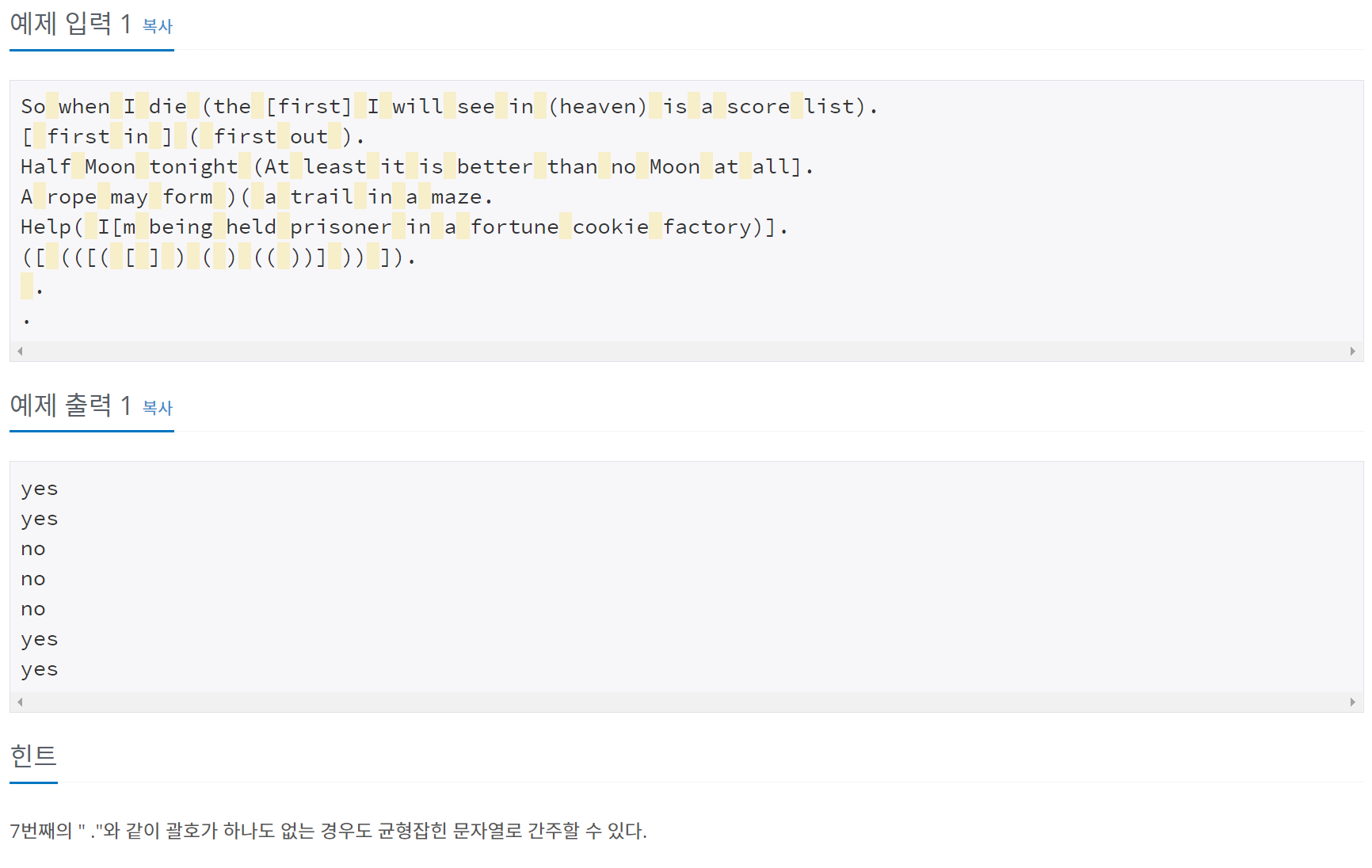 https://www.acmicpc.net/problem/4949