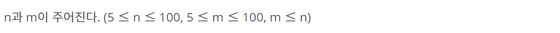 n과 m이 주어진다. (5 ≤ n ≤ 100, 5 ≤ m ≤ 100, m ≤ n)