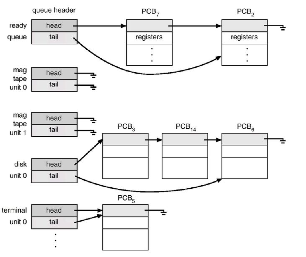 시스템의 효율을 높이기 위해 대기 상태에서는 같은 입출력을 요구한 프로세스를 모은다.