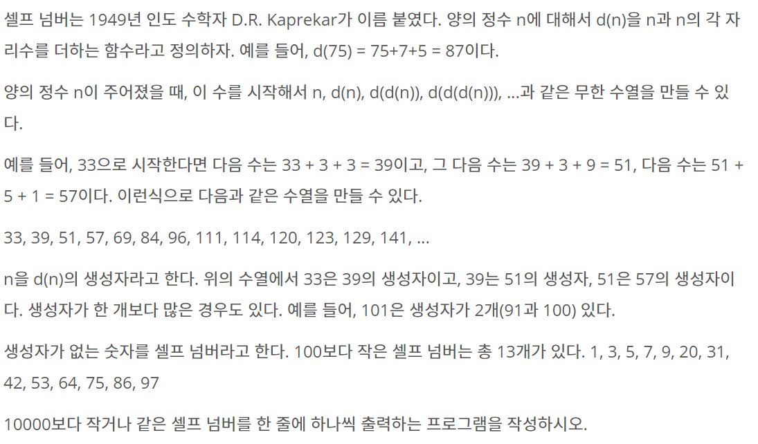 https://www.acmicpc.net/problem/4673