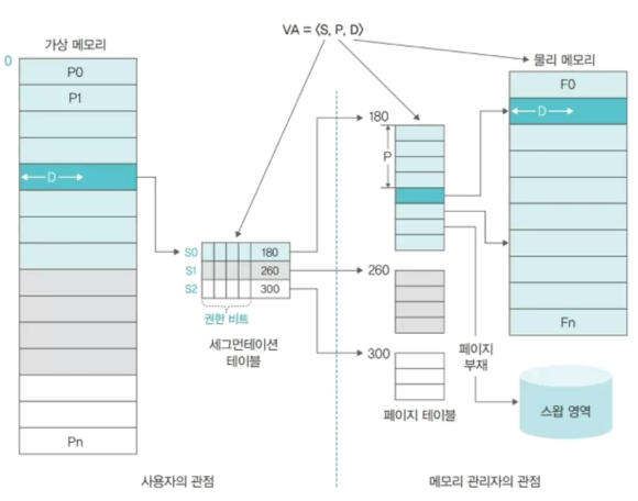 - 가상 주소 VA = <S, P, D>를 구한다.