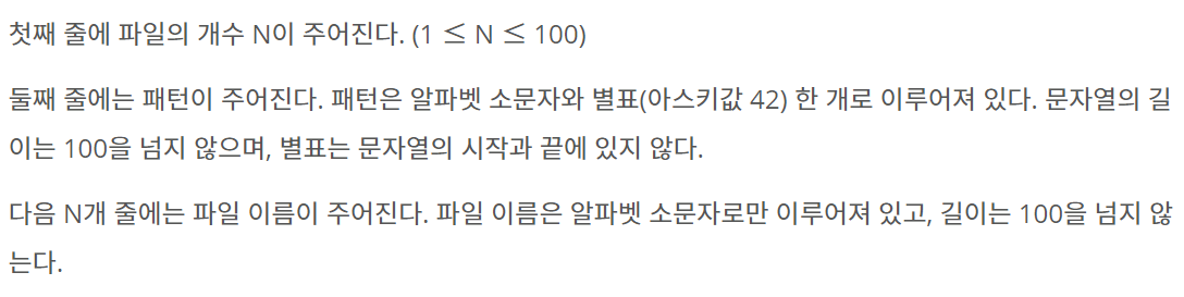 [백준(BOJ)] 9996번 : 한국이 그리울 땐 서버에 접속하지 - PYTHON[파이썬]