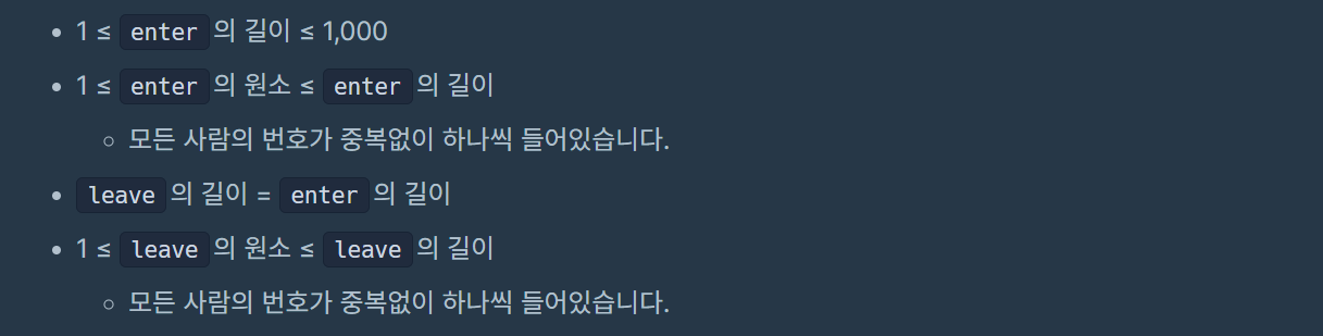 def solution(enter, leave):