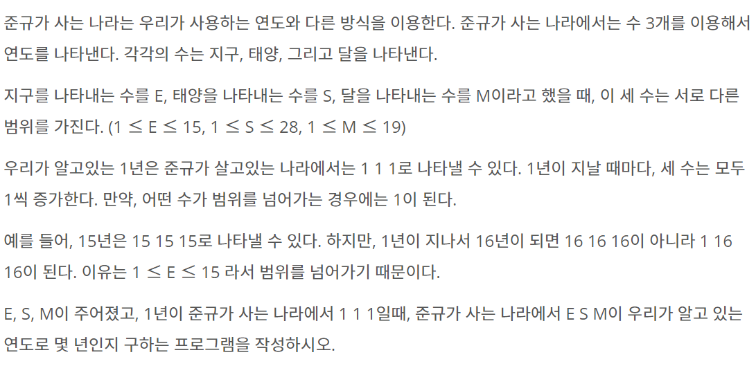 1476번: 날짜 계산