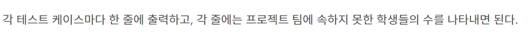 이번 가을학기에 '문제 해결' 강의를 신청한 학생들은 텀 프로젝트를 수행해야 한다. 프로젝트 팀원 수에는 제한이 없다. 심지어 모든 학생들이 동일한 팀의 팀원인 경우와 같이 한 팀만 있을