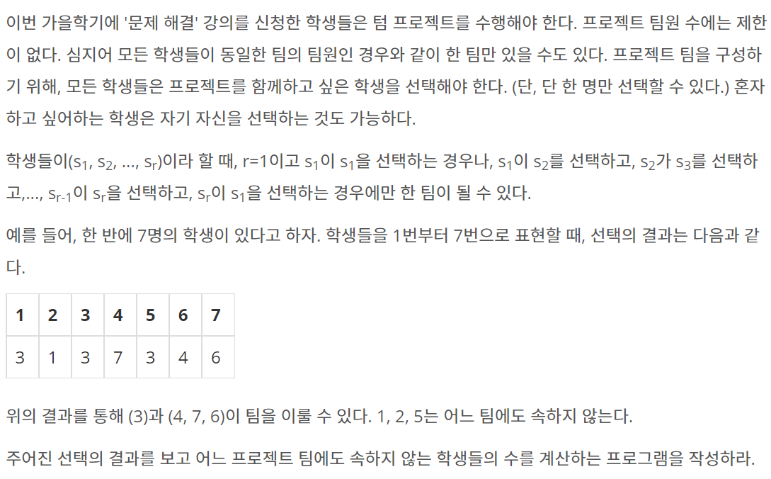 9466번: 텀 프로젝트