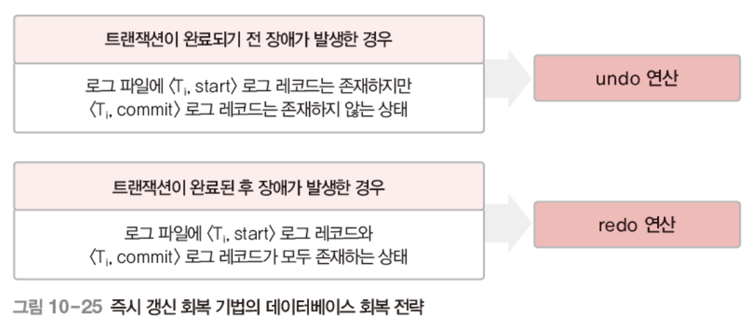 장애 발생 시점에 따라 redo나 undo 연산을 실행해 데이터베이스를 복구