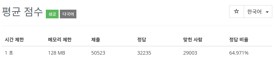 10039번: 평균 점수