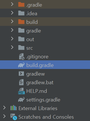 Gradle 프로젝트를 생성하면 다음과 같다.