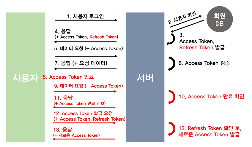 13. 서버는 사용자의 Refresh Token을 확인하고, 새로운 Access Token을 발급해준다.