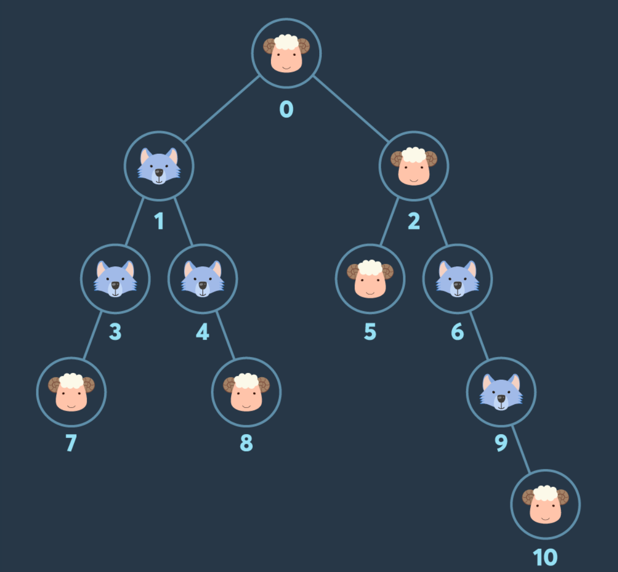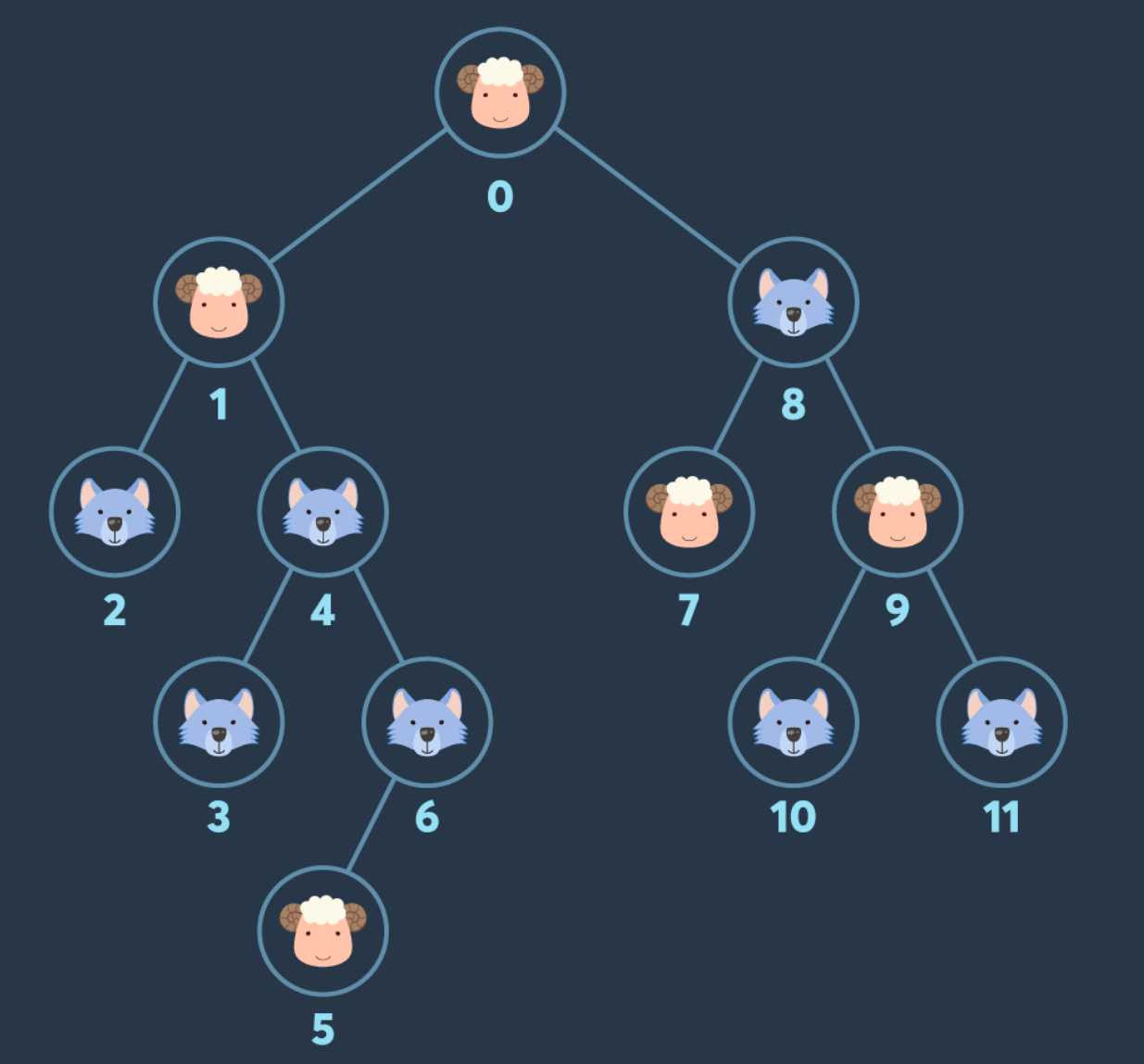 maxSheep = max(maxSheep, dfs(sheep, wolf, n, path))