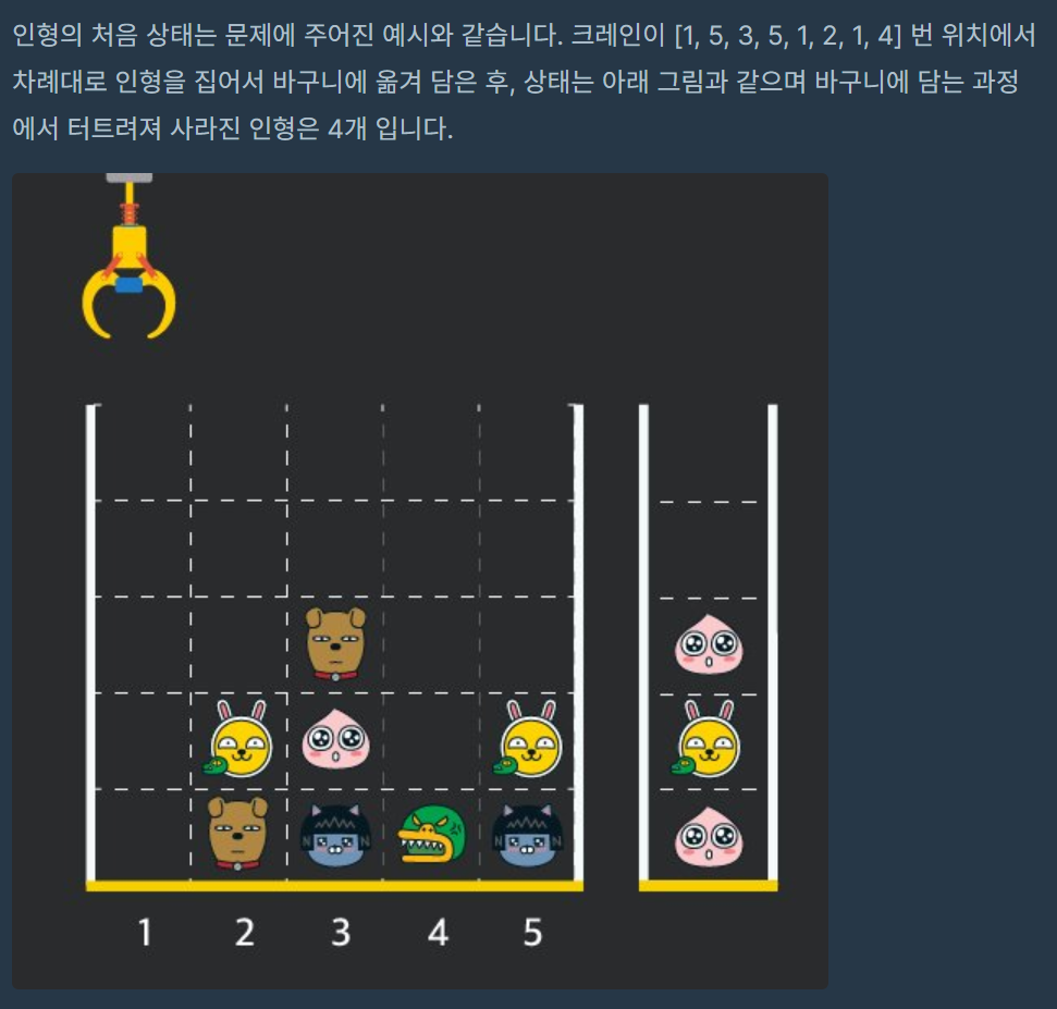 코딩테스트 연습 - 크레인 인형뽑기 게임