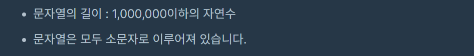 2. 2중 반복문으로 시간 복잡도(O(n^2))가.. (문자열이 1,000,000까지 인데...)