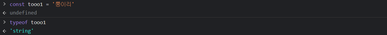 위와같이 선언과 초기화를 동시에 해주면 타입스크립트는 tooo1의 값을 string으로 간주해요.