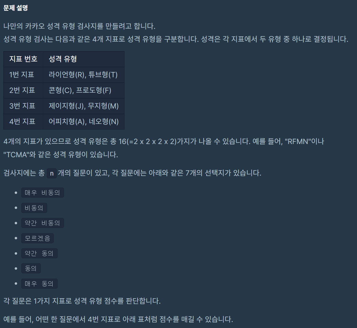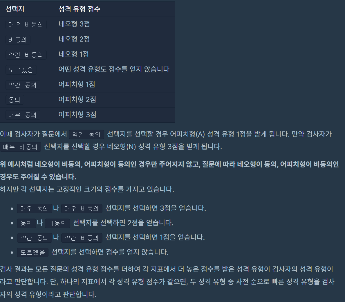 servey는 앞은 비동의일 때, 뒤는 동의일 때 어떤 유형인지 알려준다.