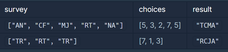 answer.append(survey[cnt][1])