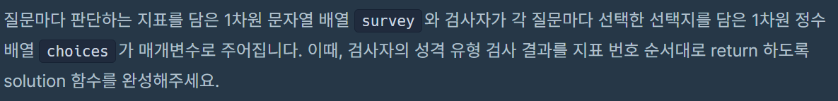 배열을 하나 만들고 거기에 점수만큼의 해당 유형을 추가해주었다.