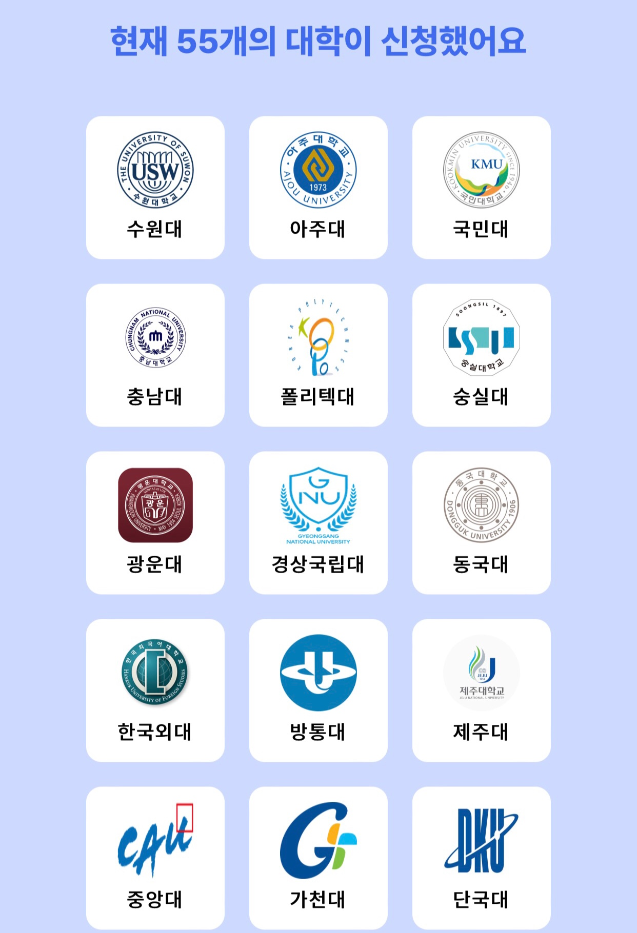 - 홈페이지가 대학생만의 느낌이 없는 것 같아요.
