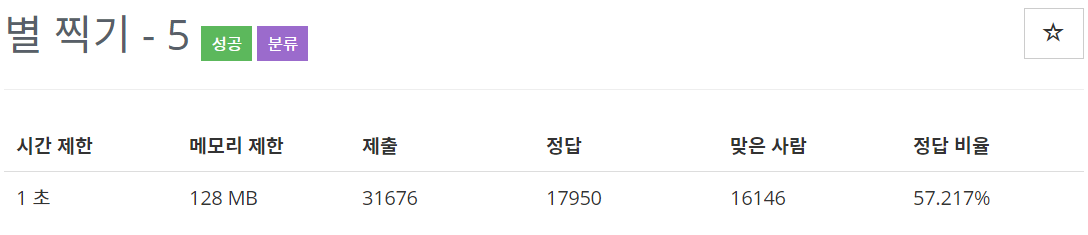 첫째 줄에는 별 1개, 둘째 줄에는 별 3개, ..., N번째 줄에는 별 2×N-1개를 찍는 문제 별은 가운데를 기준으로 대칭이어야 한다.