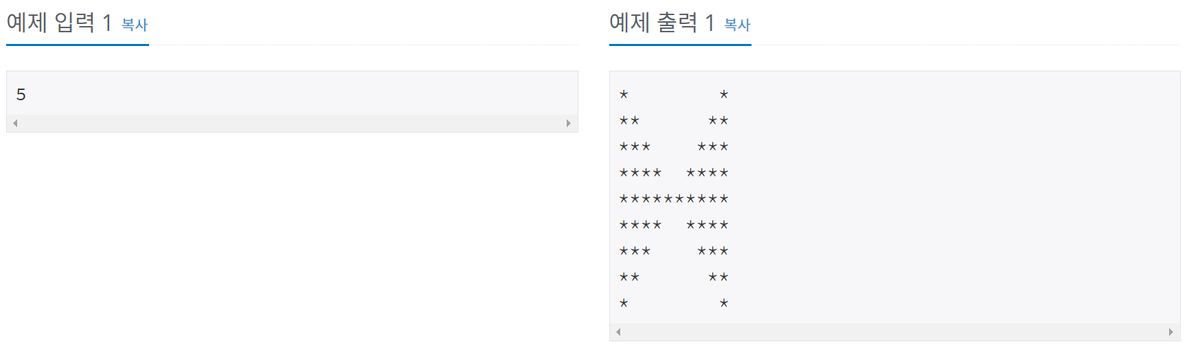 첫째 줄부터 2×N-1번째 줄까지 차례대로 별을 출력한다.