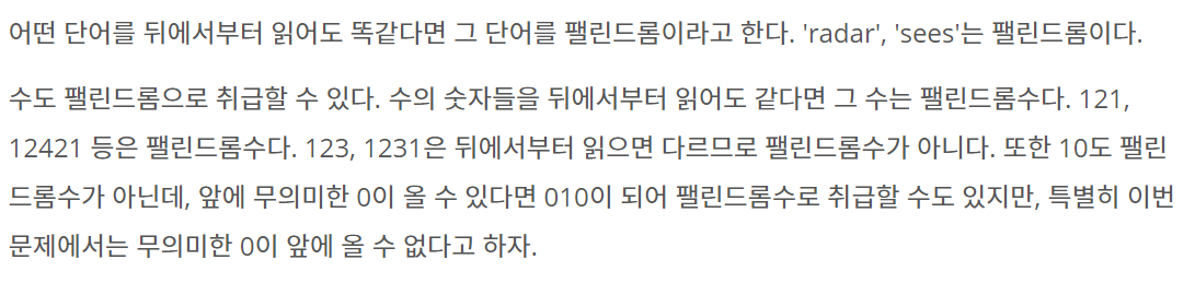 1259번: 팰린드롬수