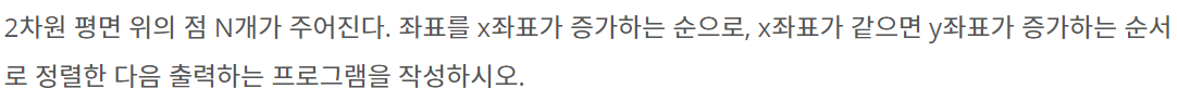 11650번: 좌표 정렬하기