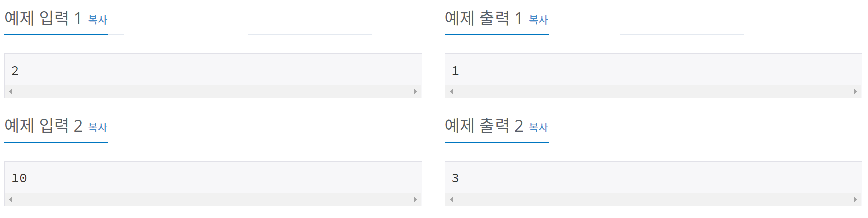 첫째 줄에 1보다 크거나 같고, 106보다 작거나 같은 정수 N이 주어진다.